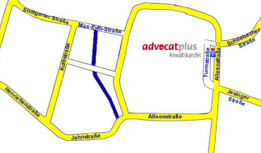 Auf dem Plan können Sie die Lage der Kanzlei erkennen. Wenn Sie von der Autobahn kommen,